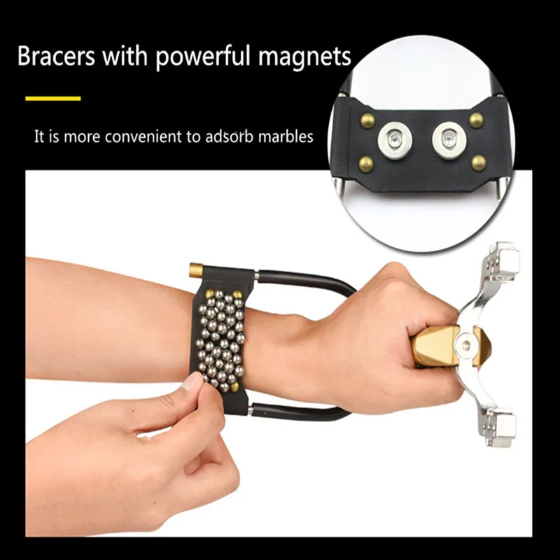 Преимущества рогатки:1. Головка рогатки, ручки рогатки изготовлены из металла. Очень прочный.2. Рогатка может быть установлена с 6 резиновыми лентами, которые очень мощные и подходят для охоты.3.Рогатка оснащена подставкой для запястья, которая может разложить частьСилы тяги на руку для лучшей стабильности съемки.