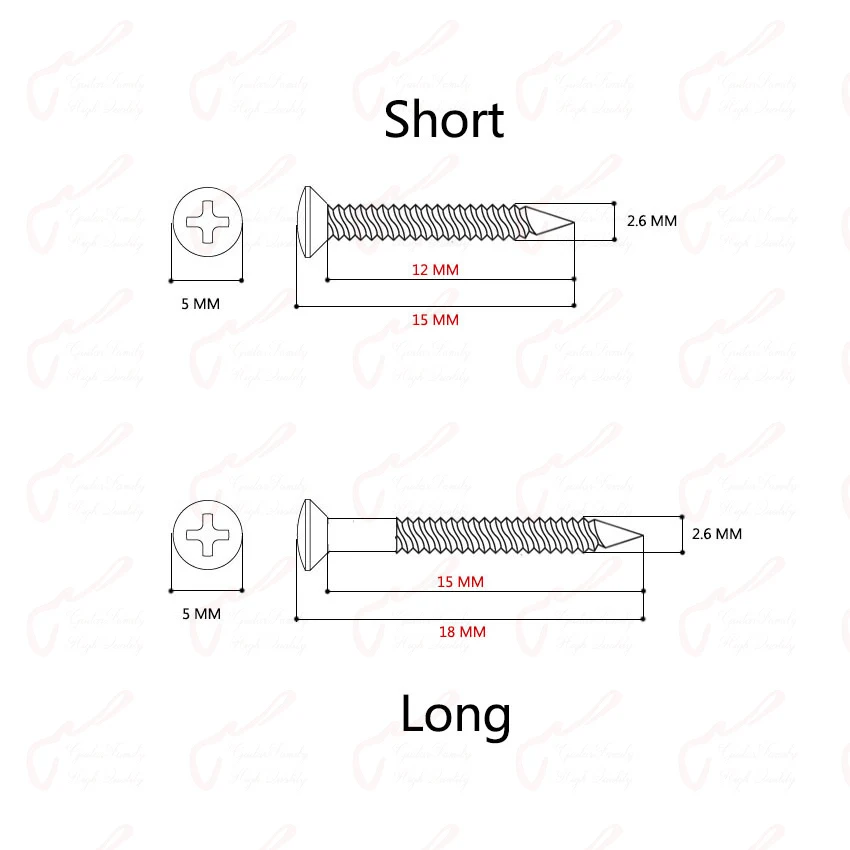 Короткие и длинные винты не имеют золотого оттенка. Длинные винты из более темного желтого золота. Это довольно заметно на моей гитаре.