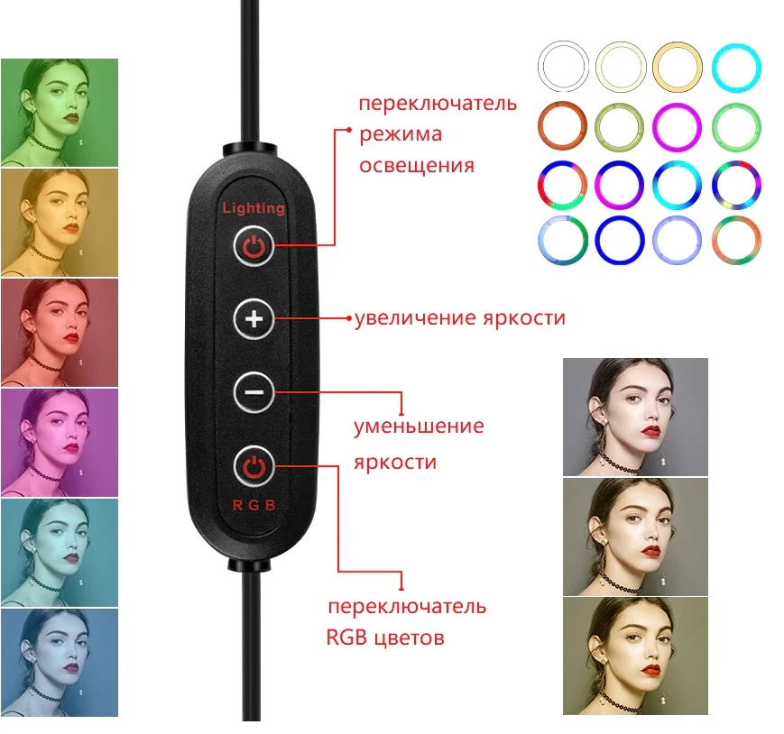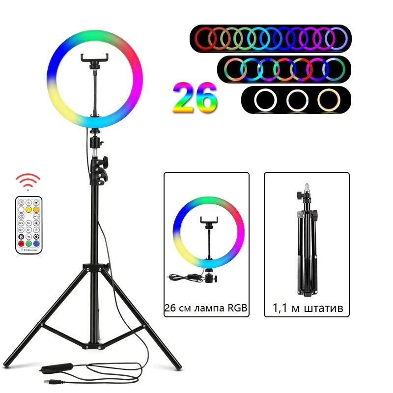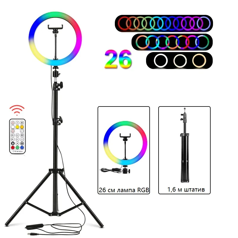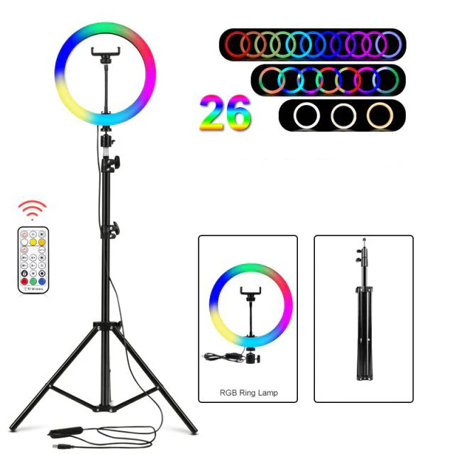 Кольцевой светильник для селфи, лампа со штативом 26 см и штативом, светодиодные круглые лампы различной длины, USB, с держателем для телефона, подходит для нанесения макияжа и фотосъемки