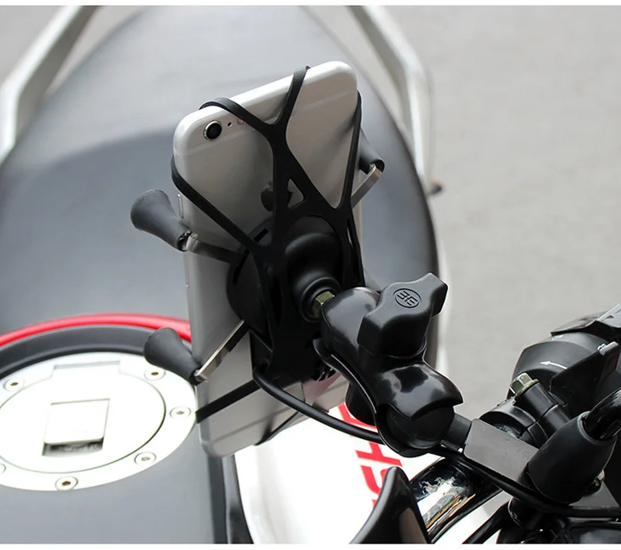 Универсальный мотоцикл велосипед GPS держатель телефона с USB зарядное устройство Крепление зажим мотоцикл телефон аксессуар держатель Особенности:1. Улучшенный пружинный держатель расширяется и подходит для идеальной посадки вашего телефона.2. Чистый и умный дизайн с четырьмя ножками обеспечивает большую мощность, не скрывая телефон за поролоновыми прокладками и пластиком.3. Двойное использование: установка зеркала заднего вида или крепление на руль.4. Изготовлено из композитного материала и нержавеющей стали с противоскользящей конструкцией, резиновые наконечники надежно удерживают устройство. Резиновый ремешок с бабочкой сохранит ваш телефон в стабильном положении, чтобы защитить ваше устройство во всех направлениях.5. Зарядное устройство USB для телефона: оснащен usb-портом для быстрой зарядки 5 В/2,1 А, не нужно больше беспокоиться о низком заряде батареи.6. Отрегулируйте удобный угол самостоятельно с двумя вращающимися на 360 градусов роликовыми шариками.7. Автоматическое выключение, когда напряжение зарядки превышает 30 В.8. Подходит для всех видов смарт-телефон с 3,5-6 дюймов экран, как, например, устройств Samsung Galaxy S4, S5, S6, S6 края, S6 Edge plus, S7, Note 4, Note 5.9. Он может держать плотно даже с бампером, кожей телефона или оболочкой телефона.