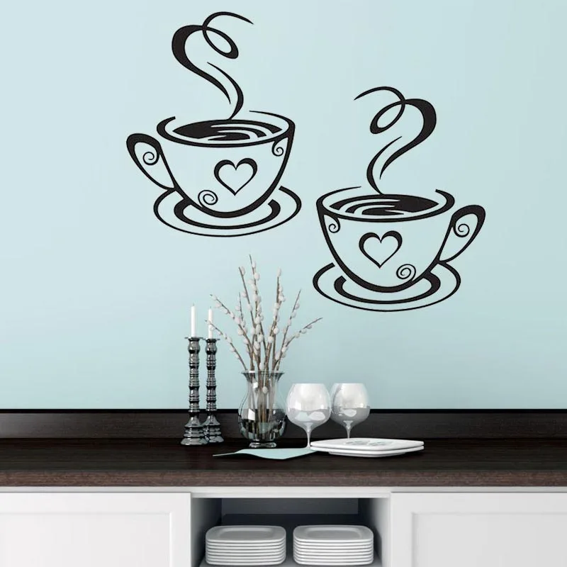 Новая двойная наклейка кофейные чашки, настенные из ПВХ виниловые художественные наклейки на стены клейкая наклейка s декор для кухни дропшиппинг