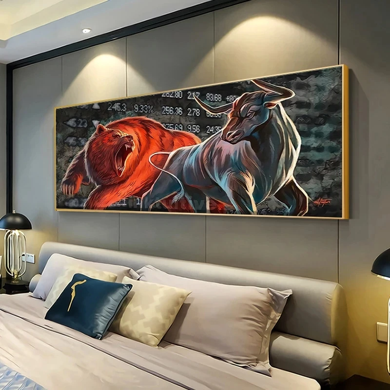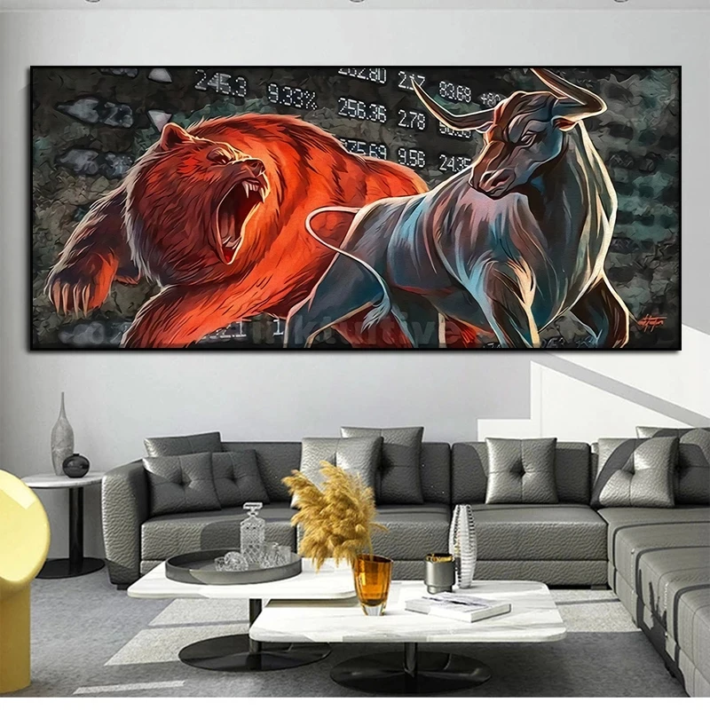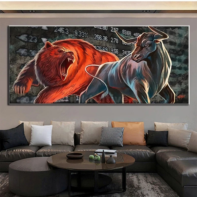 Современная Абстрактная животная злый бык и свирепый медведь Картин...
