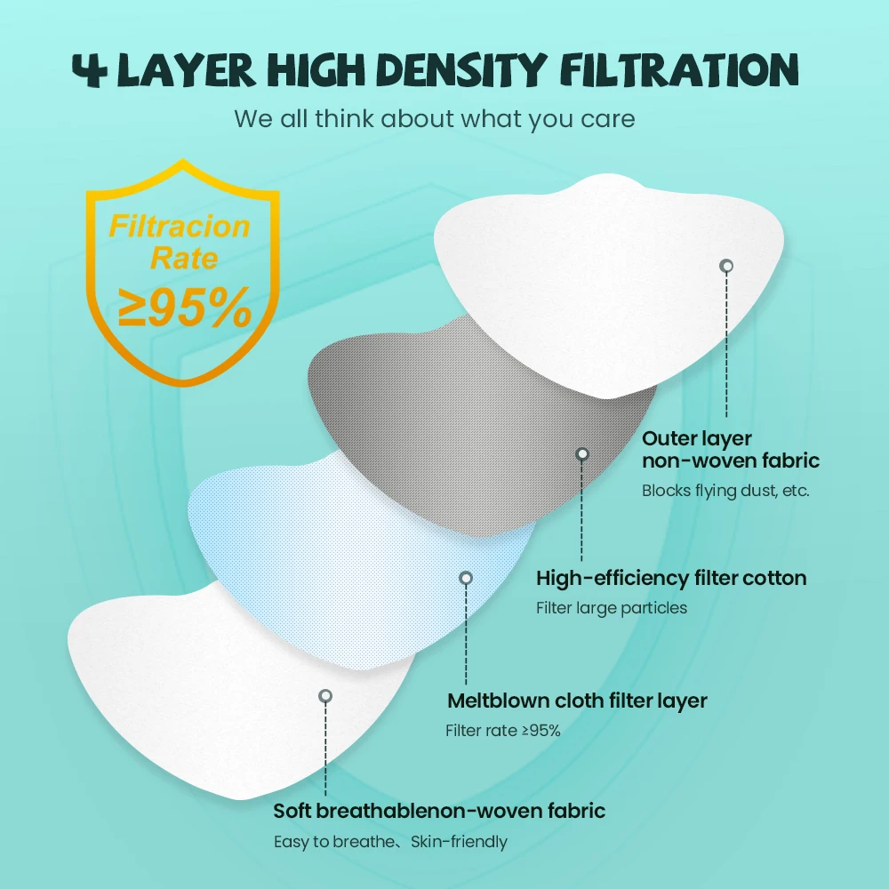 1. Материал: нетканый материал + фильтрующий слой. Изготовлен из высококачественного материала, приятен для кожи, дышащий.