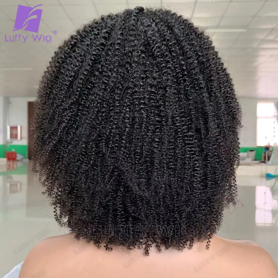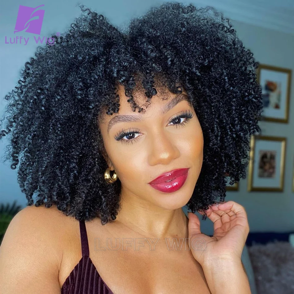 Афро кудрявые вьющиеся человеческие волосы парик с челкой полностью машинное изготовление парик для головы 200% Remy короткие парики человеческие волосы бразильский парик Luffywig