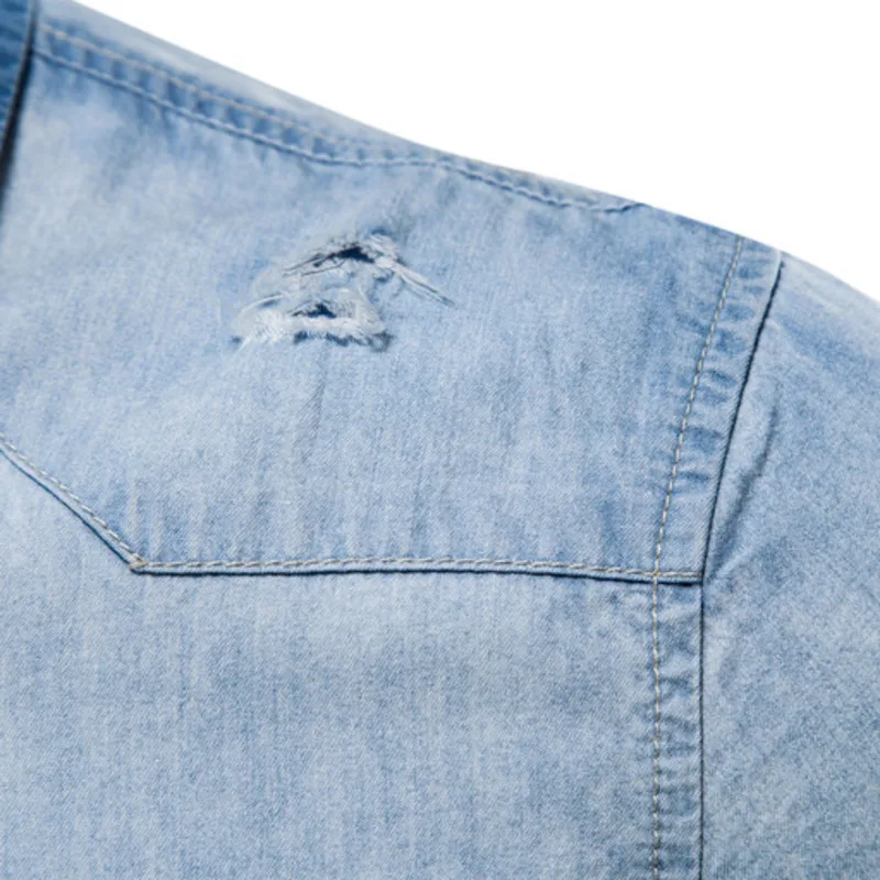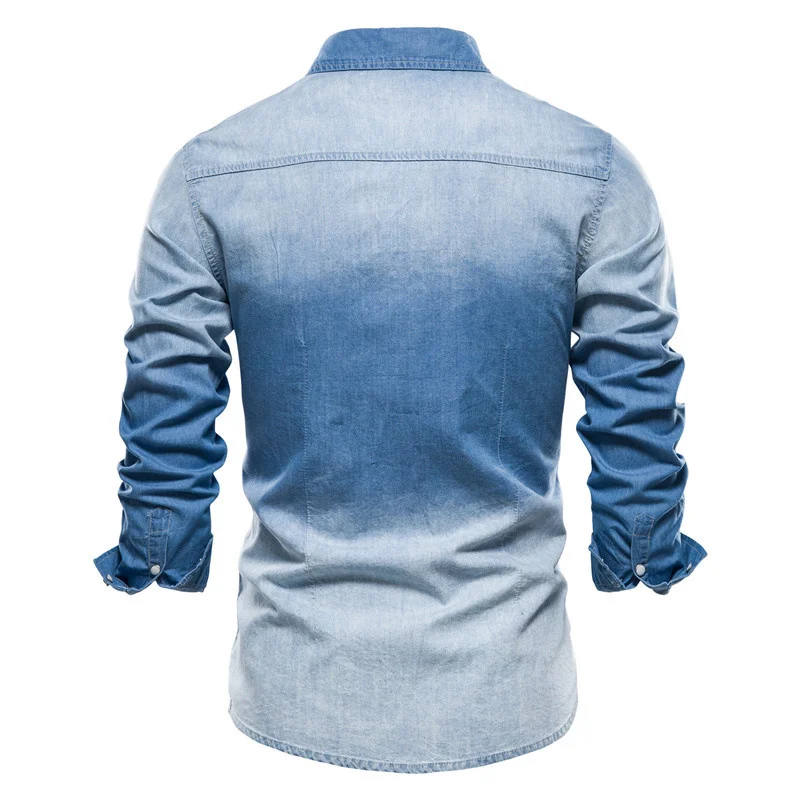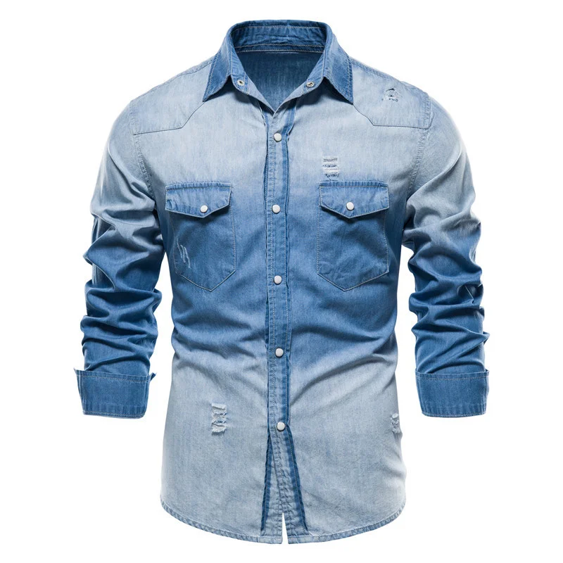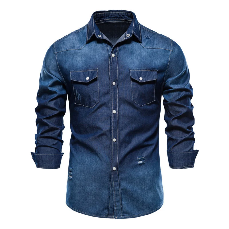 Рубашка мужская джинсовая с длинным рукавом, 100% хлопок, 2021