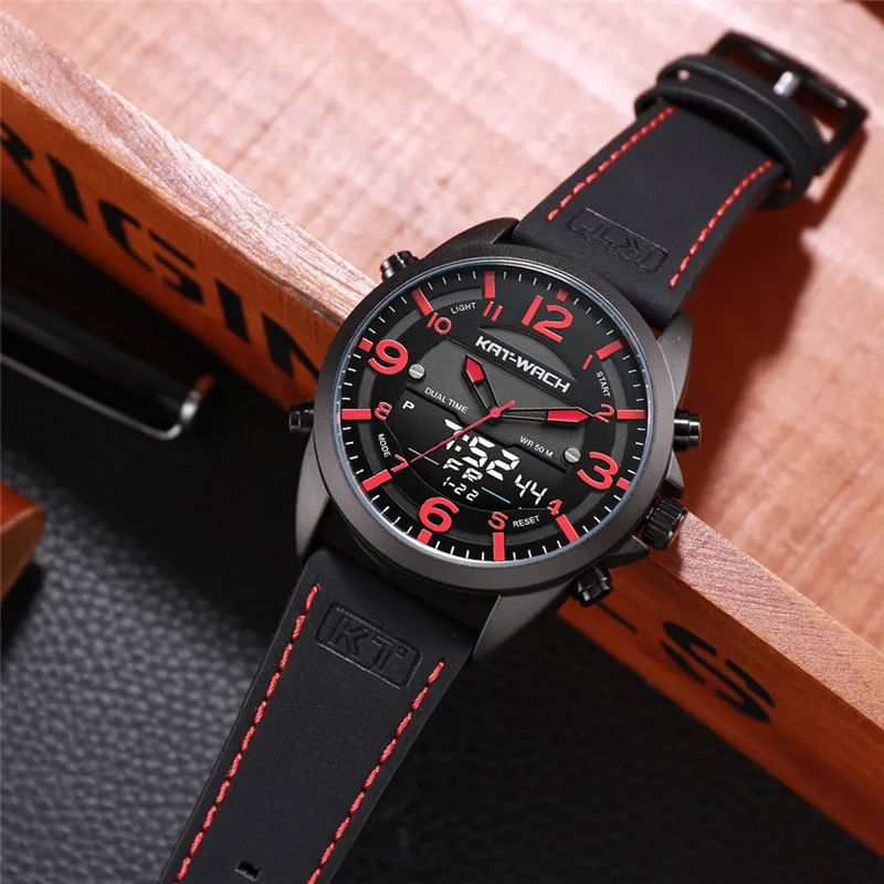 KAT-WACH 2022 мужские спортивные часы с двойным часовым поясом для ...