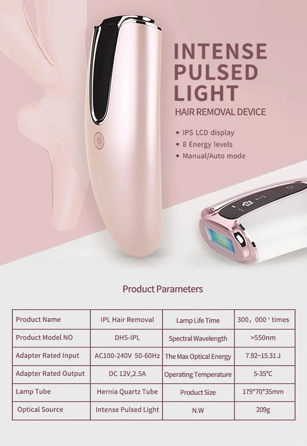 【Эффективная и постоянная система удаления волос IPL использует те же клинически проверенные технологии IPL, которые используются дерматологом и салонами красоты. Принцип заключается в том, чтобы излучать сильный пульс и поглощаться волосяным фолликулом, стимулирует волосяной фолликул, чтобы войти в спящий период для достижения постоянного удаления волос.【Нежный и безболезненный 】ipl удаление волос излучает теплый светильник, и кожа ощущается только в тепле. Он очень нежный, особенно для первых пользователей или работает на нежных областях, таких как лицо или Линия бикини.【 8 уровней и 2 режима 】 8 различных уровней энергии для адаптации кожи. Вы можете регулировать уровень в соответствии с областью кожи и скоростью роста волос. В первый раз мы предлагаем начать с уровня 1, чтобы привыкнуть к устройству и мигать. Два режима дизайна могут удовлетворить ваши требования к различным частям для удаления волос. Ручной режим в основном используется для удаления волос на небольшой площади, такой как линия бикини, подмышка, пальцы, губы; Автоматический режим используется для большой области удаления волос, таких как руки, ноги, живот и спина.【 300000 вспышек и отсутствие дискретных требований 】 300000 вспышек достаточно для пожизненного времени. Следуйте инструкциям руководства, чтобы правильно использовать Удаление волос IPL, это поможет вам быстрее удалить волосы.【Экономичное решение для дома-по сравнению со стоимостью методов удаления волос в салоне, финансовые преимущества этого устройства для удаления волос в доме скоро будут видны. Профессиональный производитель и строгий контроль качества делают нас уверенными в нашем домашнем использовании в домашнем лазерном удалении волос.
