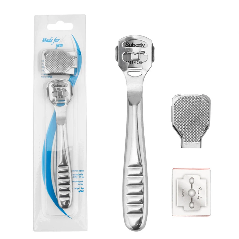 10 лезвий, инструменты для ухода за ногами, бритва для ног, средство для удаления огрубевшей кожи на пятках, инструмент для педикюра, бритва, ручка из нержавеющей стали