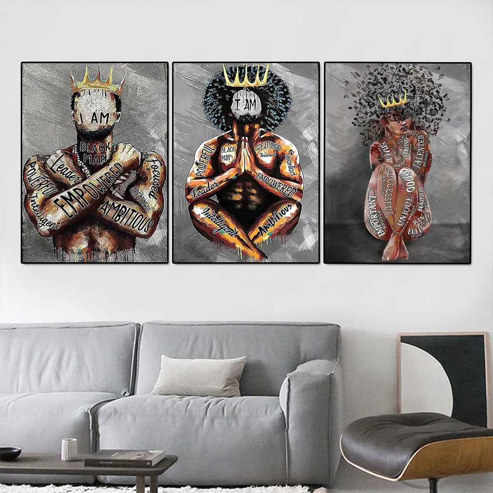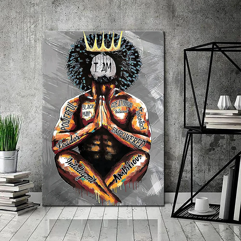 Настенная картина черный человек, плакат афроамериканского человека, Я упражненный король, Абстрактная Картина на холсте для гостиной, комнаты пчеловодства, домашний декор