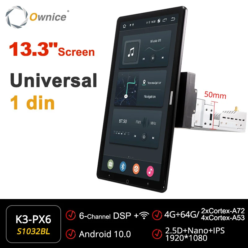 13,3 дюймов Android 10,0 Ownice авто поворотный 10,1 дюймов 1920*1080 IPS Nano универсальный автомобильный радиоприемник Мультимедиа Стерео Аудио HDMI