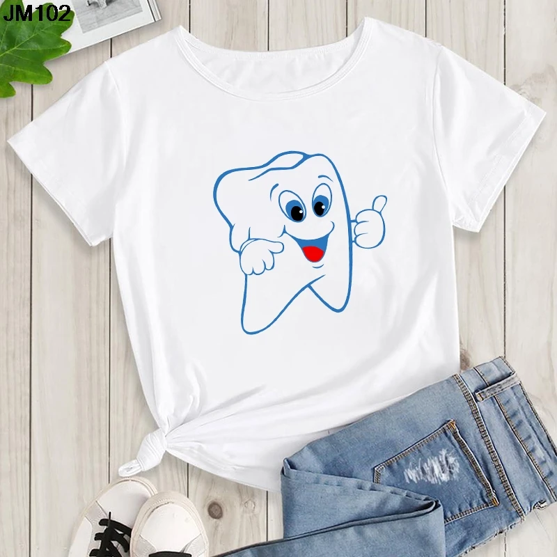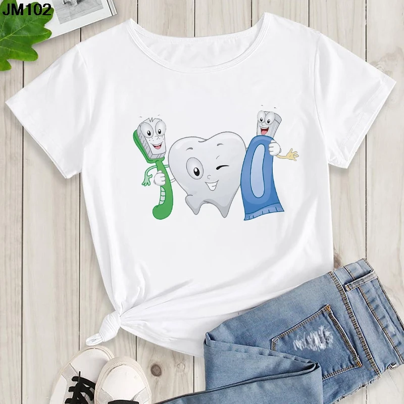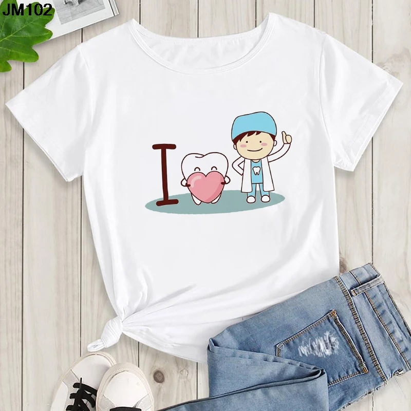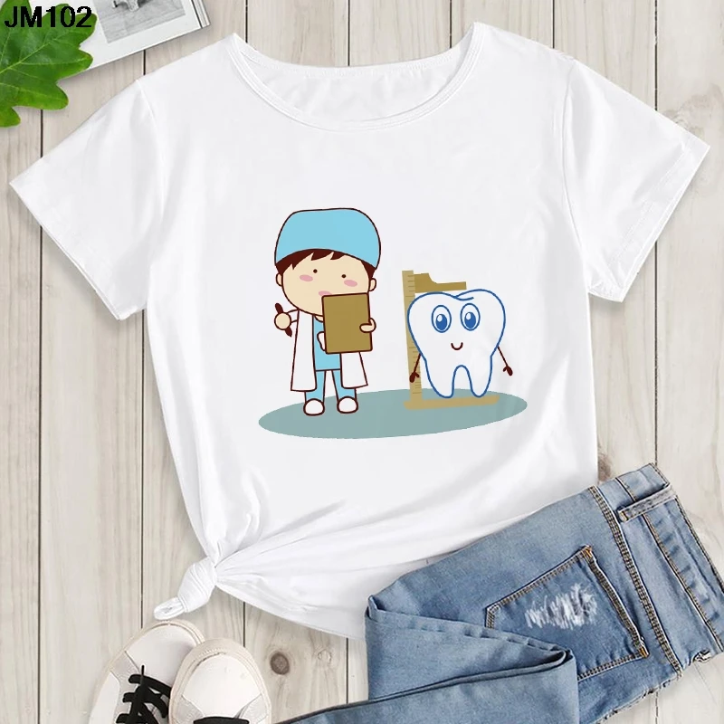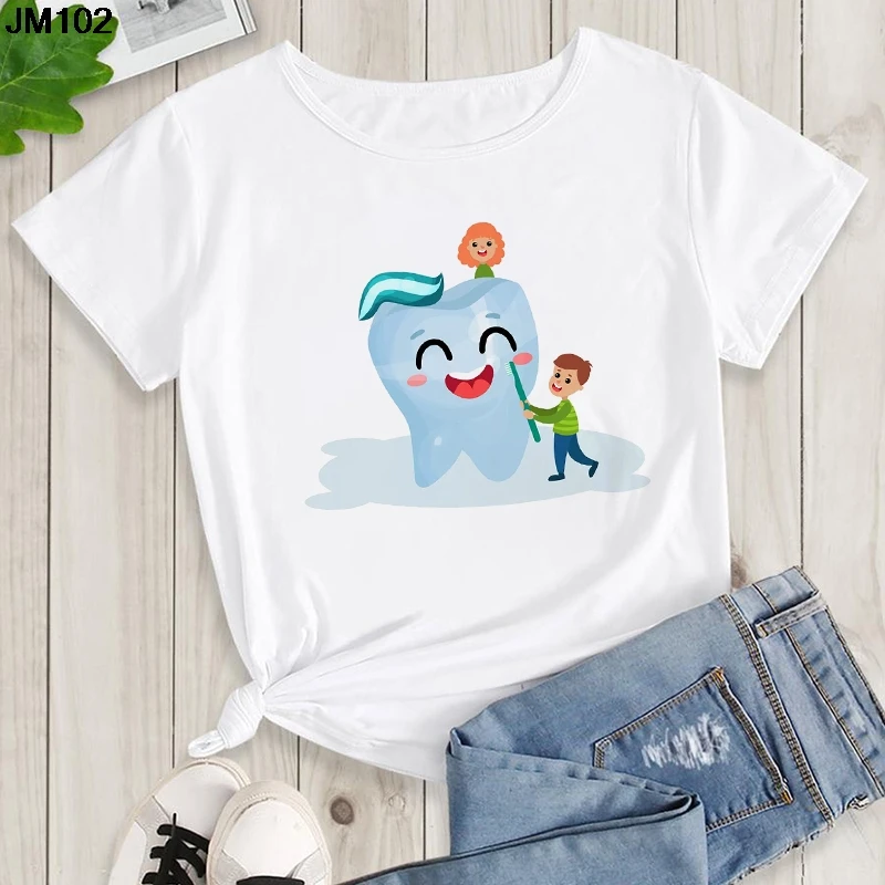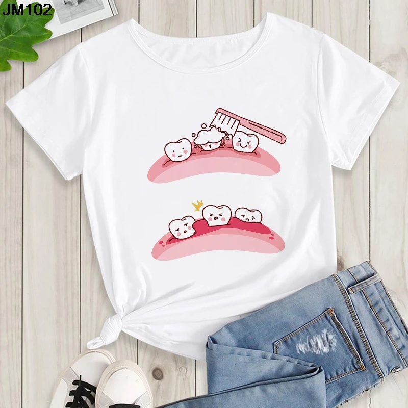 Футболка женская с забавным принтом зубов и дантиста, милая рубашка с круглым вырезом в стиле 90-х, модный топ, на лето