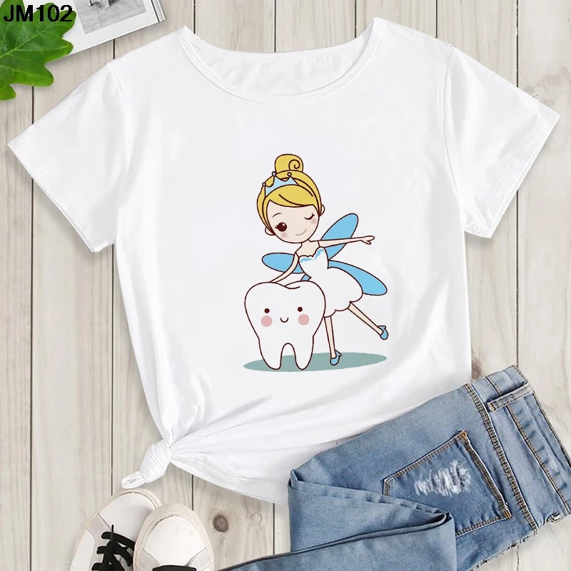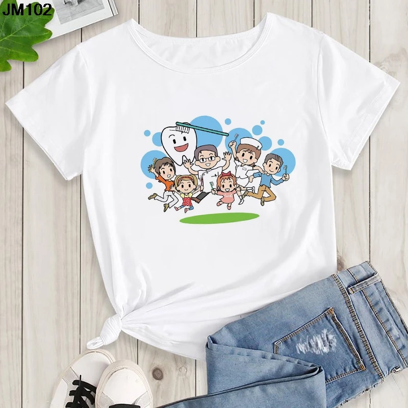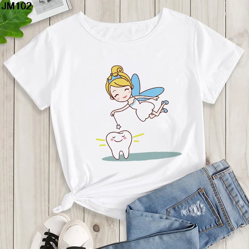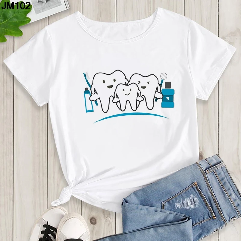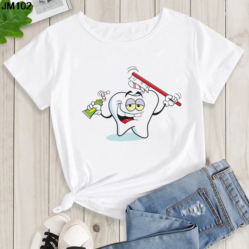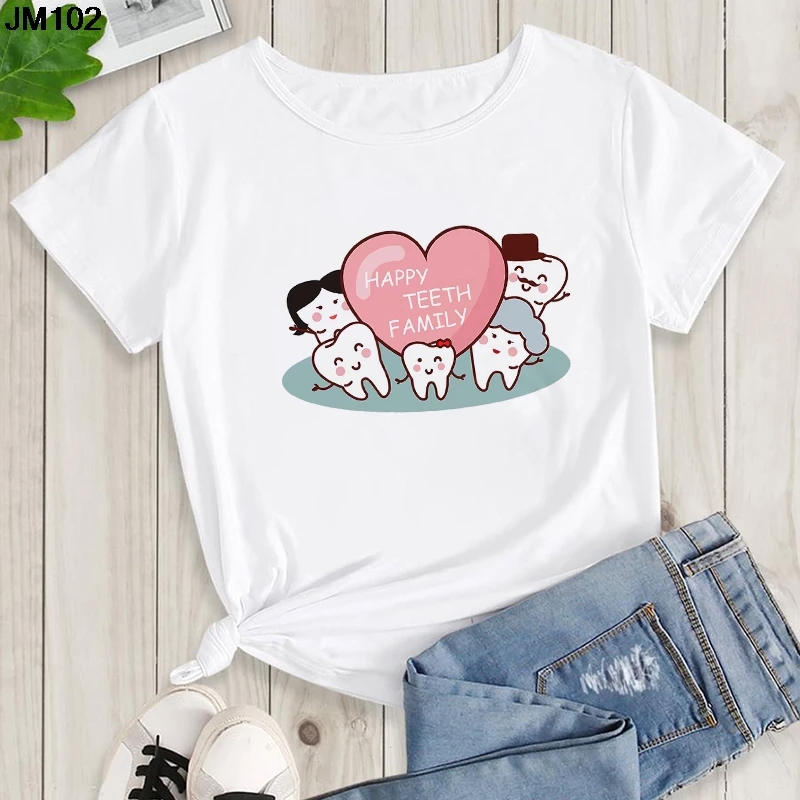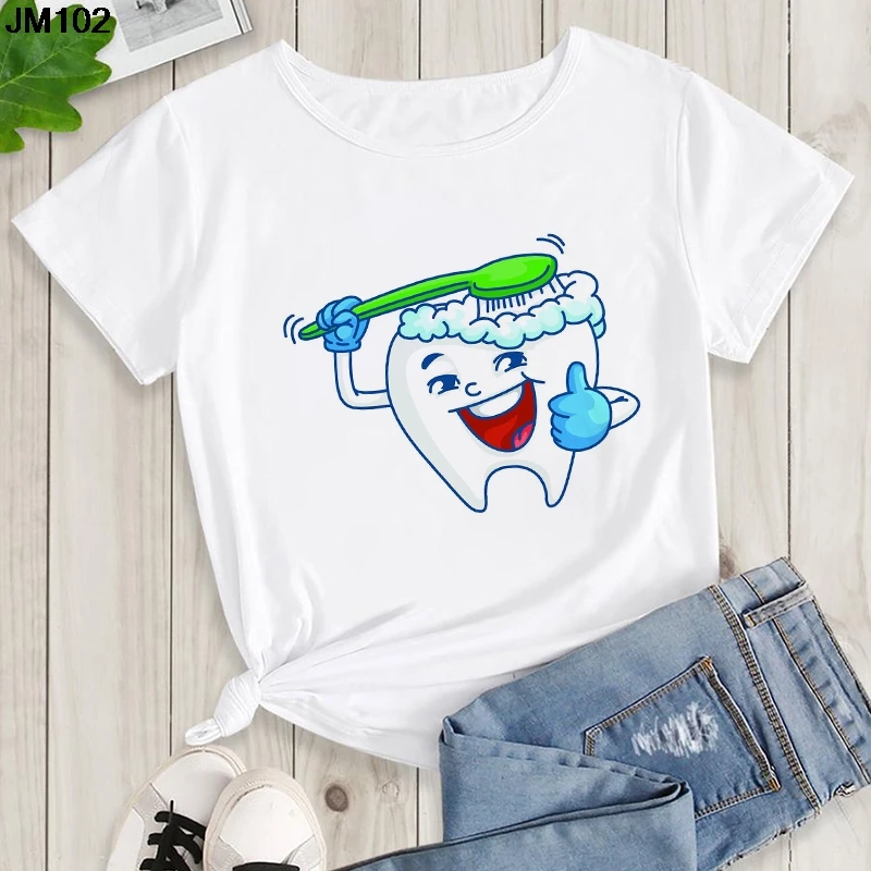 Футболка женская с забавным принтом зубов и дантиста, милая рубашка с круглым вырезом в стиле 90-х, модный топ, на лето
