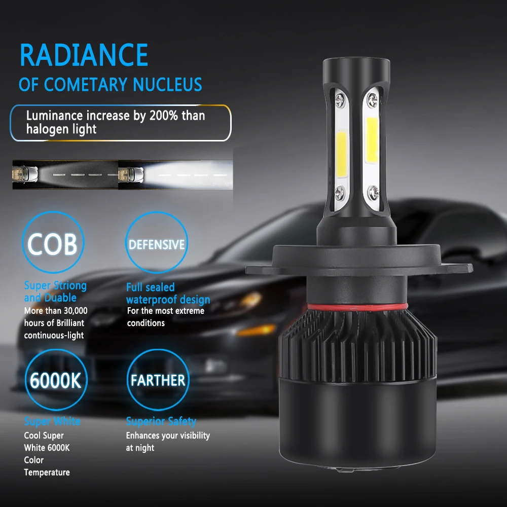 2 шт., Автомобильные светодиодные лампы H4 72 Вт 6500 лм к