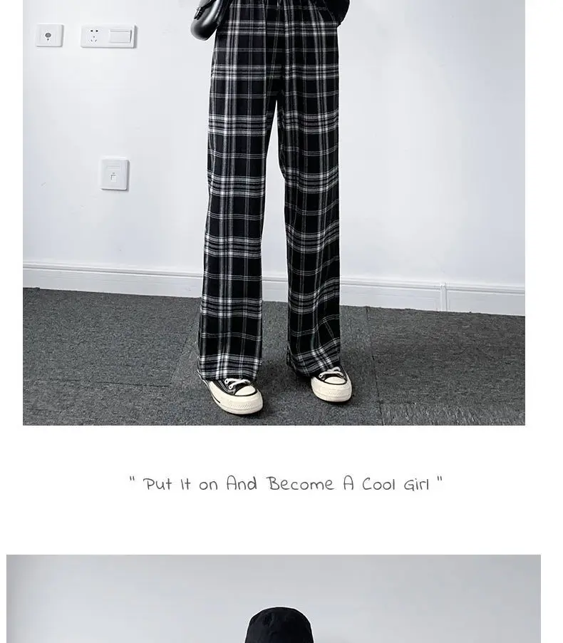 Женские длинные брюки в клетку, с широкими штанинами и высокой талией, в Корейском стиле, весна-лето 2021