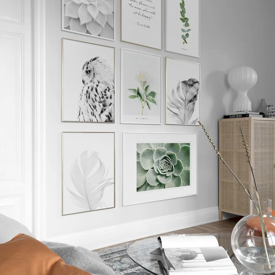 Постер на стену с изображением пера, белых пионов, совы, суккулентов, цветов, кактуса в скандинавском стиле, Картина на холсте для домашнего декора, картины для гостиной