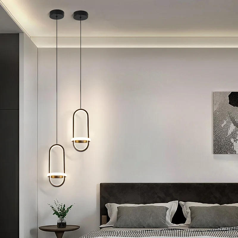 Простой подвесной светильник в скандинавском стиле, светодиодный современный светильник 35 см, 15 Вт, 220 В, черный, золотой, прикроватный светильник для спальни, гостиной, фоновый светильник овальной формы