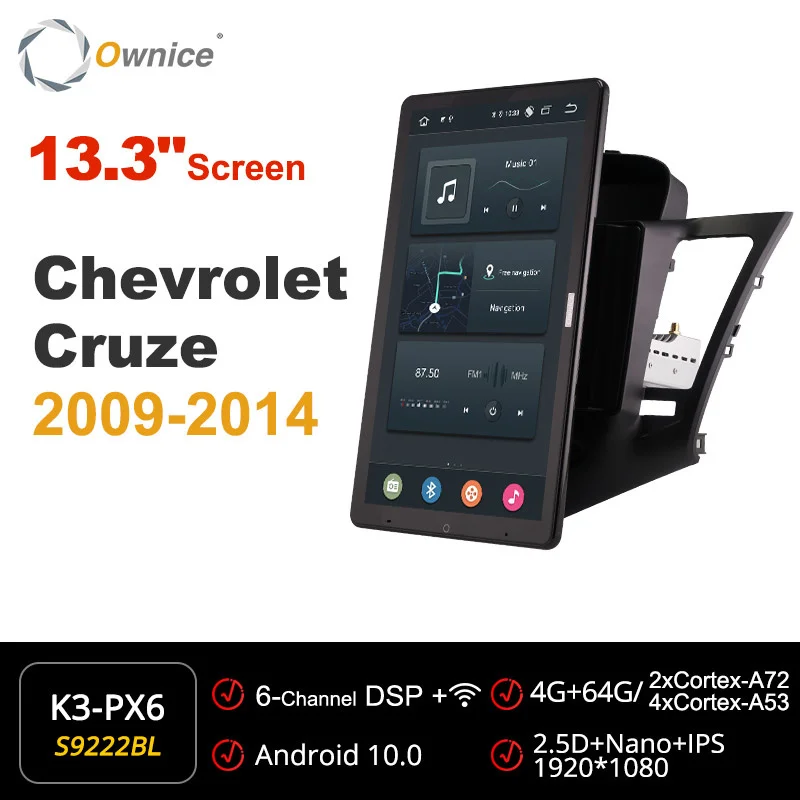 Автомобильное радио 13,3 дюймов 1920*1080 Ownice 1 Din Android 10,0 для Chevrolet Cruze 2009 - 2014 GPS, поворотная аудиосистема для автомобиля