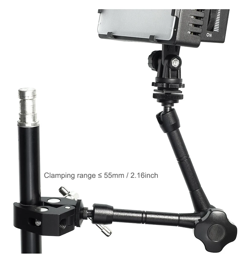 Описание:Прочный и долговечный-это хорошо обработанный металл, изготовленный из твердого анодированного алюминиевого сплава, который не подвергнется коррозии или поломке.MAGIC ARM-одна сторона имеет винт 1/4 дюйма, подключаемый к монитору, светильник ке или другим аксессуарам. Еще одна сторона-квадратное крепление hot shoe, которое можно легко установить на камеру DSLR. Это крепление для горячего башмака можно снять, чтобы стать еще одним винтом 1/4 дюйма, поэтому оба конца-это винты 1/4 дюйма, которые можно подключить к разному оборудованию.Легко управлять-Эта волшебная рука с фиксирующими ручками управления для снятия или увеличения натяжения, которые могут дать движение любого положения. Этот шарнирный волшебный рычаг с двумя гладкими шариковыми головками на 360 ° упрощает установку, размещение и регулировку любого освещения на камере и других аксессуаров.Широкое применение-Шарнирный Рычаг Magic Arm с фрикционным рычагом крепление для горячего башмака идеально подходит для установки камер DSLR, ЖК-монитора, монитора DV, светодиодных ламп, фонарей, микрофонов, смартфонов и многого другого.Супер-зажим magic arm имеет гнездо 1/4-20 и 3/8-16, оба стандартных размера в фотоиндустрии для головок и штативов используется для различных насадок. Например, камеры, стержни 15 мм, светодиодные фонари, зонты, крючки, полки, пластинное стекло, поперечные бруски и т. д.Простота управления-этот точный и прочный суперзажим с фиксирующими ручками управления для снятия или увеличения натяжения, который может дать движение любого положения, отличный патрон для легкой и быстрой ловли объекта.Спецификация:Цвет: черныйМатериал: металлМаксимальная нагрузка: до 2,5 кгДиапазон зажима: прибл. 55 мм/2,16 дюймаВолшебная длина руки: прибл. 285 мм/11,22 дюймаПримечание:Камера и другие аксессуары в комплект не входят;Пожалуйста, выберите правильный вариант перед заказом.ПосылкаНабор A: 1*11 "Волшебная рукаНабор B: 1*11 "Волшебный рычаг, 1 * Супер Зажим