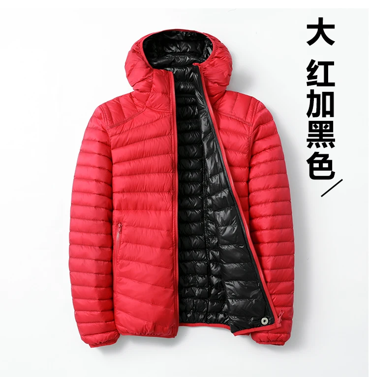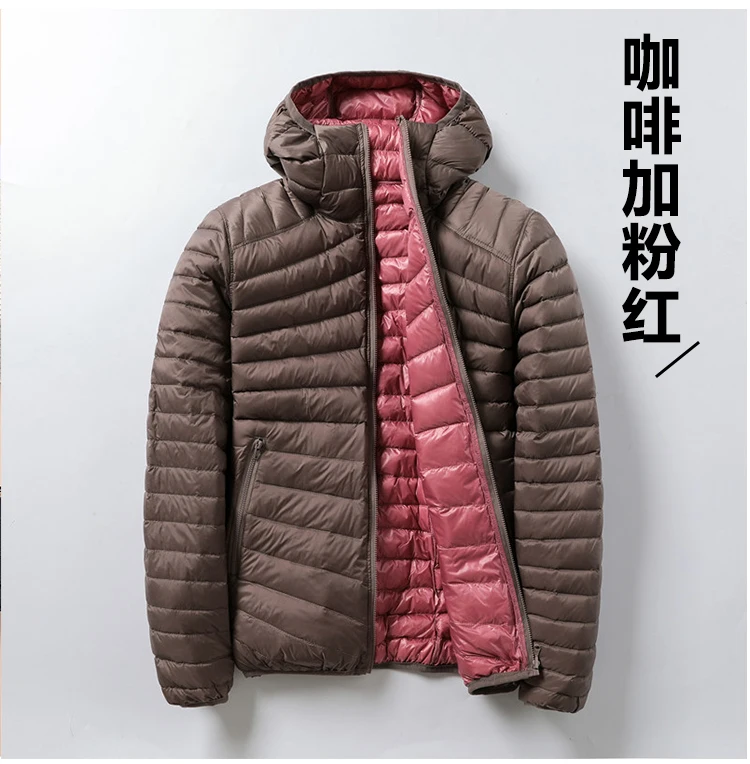 Осенняя Женская Ультралегкая тонкая куртка на белом утином пуху, куртки с капюшоном, двухстороннее теплое пальто, парка, Женская портативная верхняя одежда