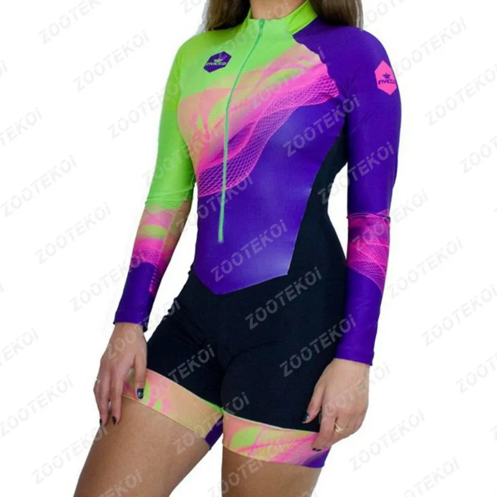 Женский велосипедный комбинезон для триатлона, с длинным рукавом