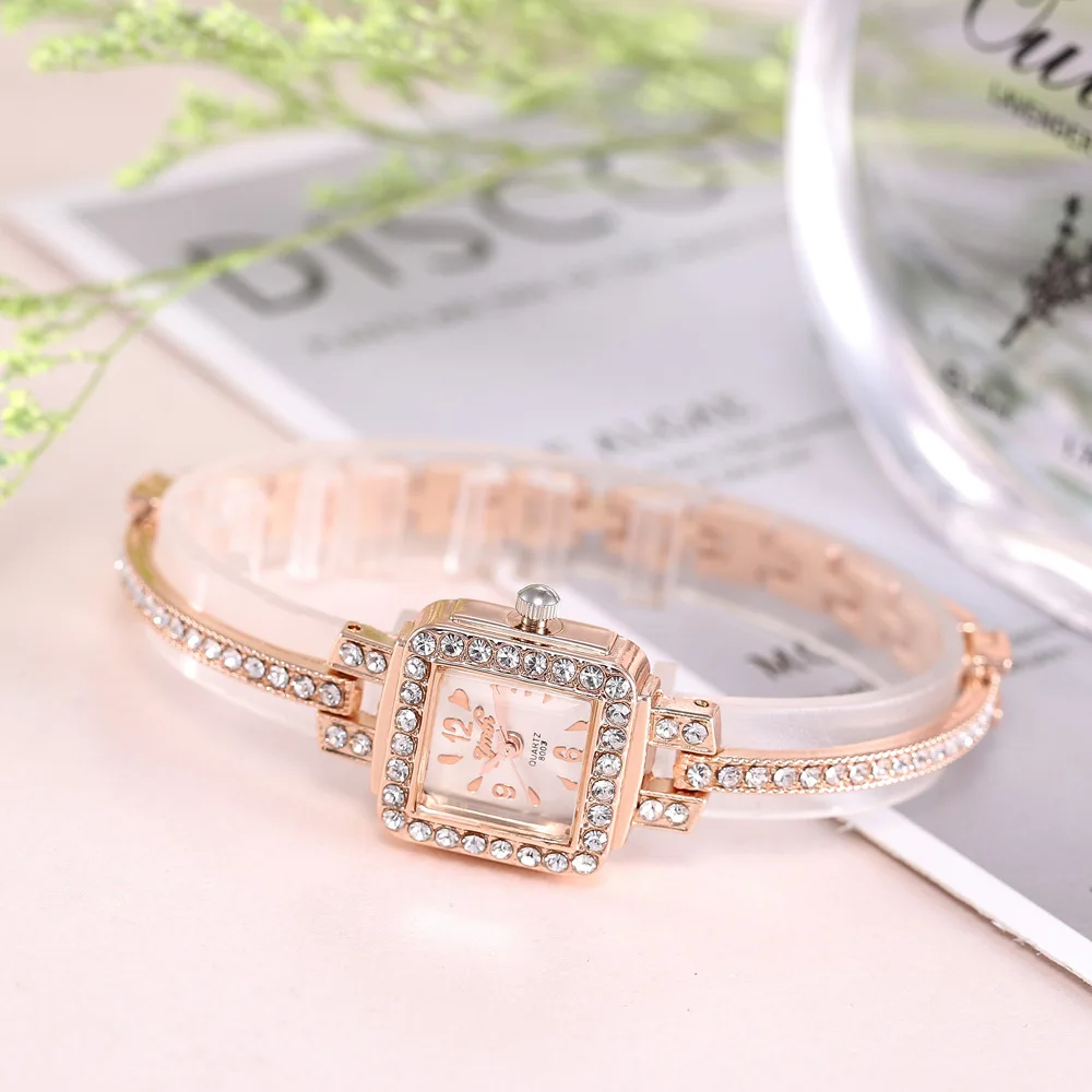 Новинка 2021, роскошные женские часы, простой модный браслет, металлический ремешок, имитация бриллиантов, инкрустированные формы, женские часы