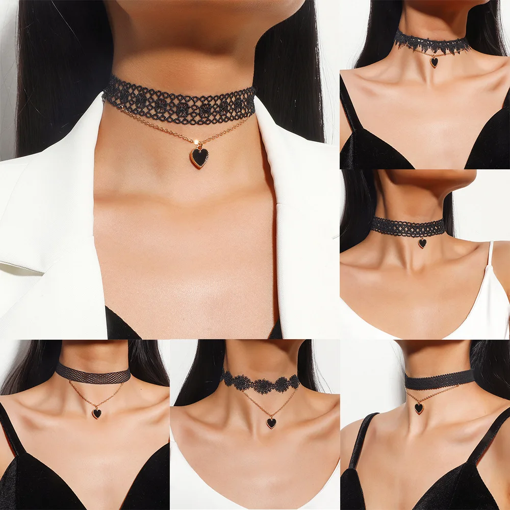 Ожерелье для женщин, крученый воротник, ювелирные изделия на шею, черное, в стиле бохо, стрейч, Инь-Ян, очарование, готический панк, ручной работы, бархатное Кружевное колье, любовь