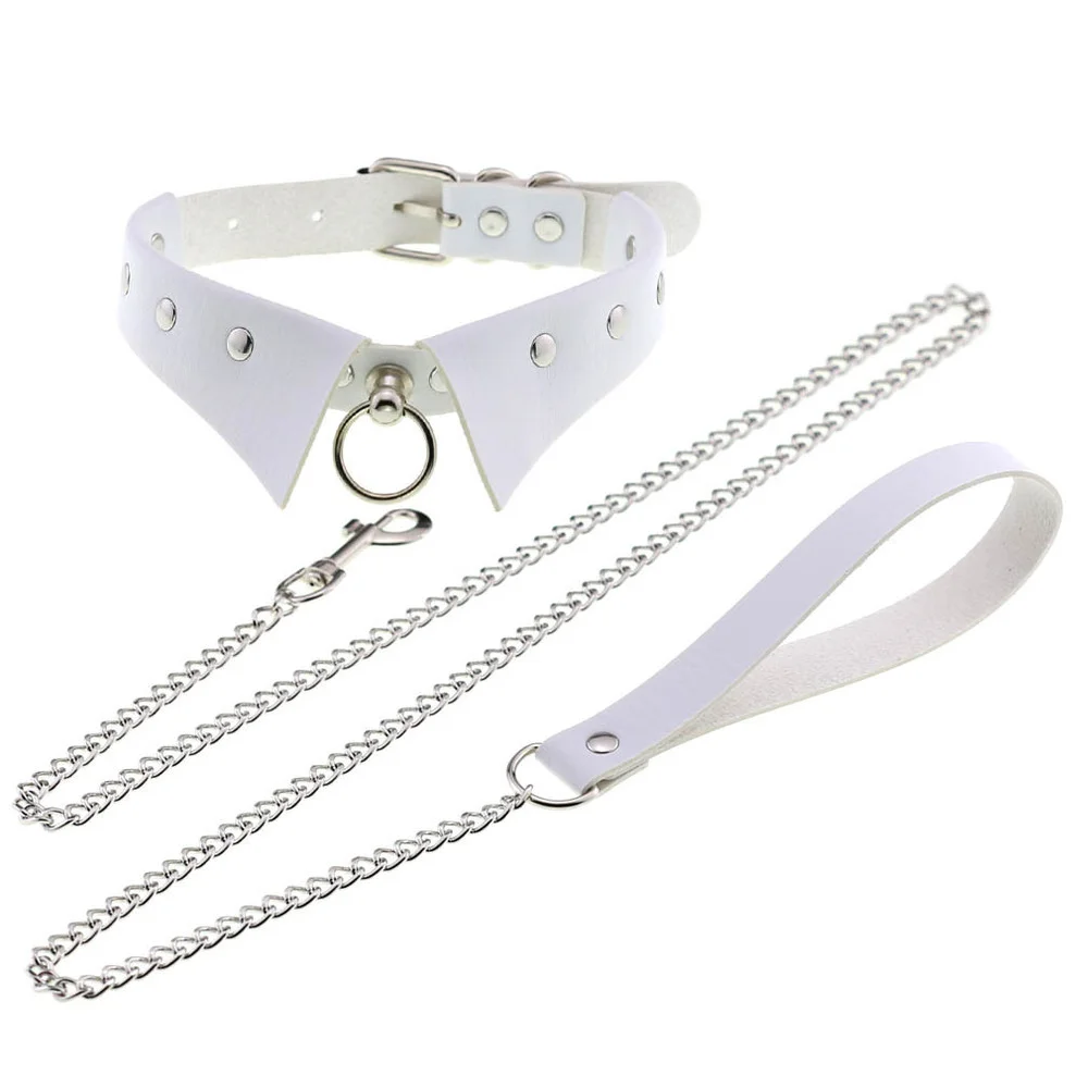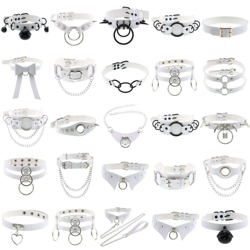 Женское кожаное ожерелье Goth в стиле панк, белое ожерелье из искус...