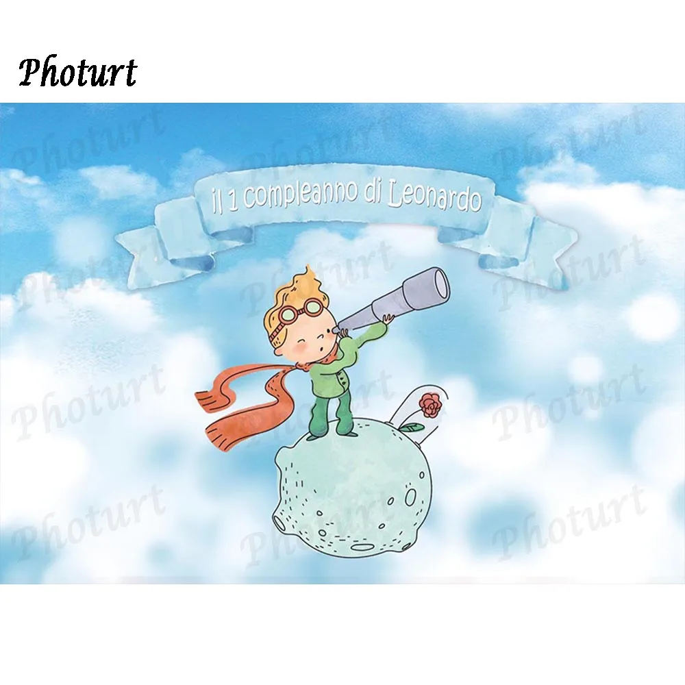 Фотофон с изображением Маленького принца фон для фотосъемки Детский праздник на 1-й День рождения Виниловый фон с изображением розы неба