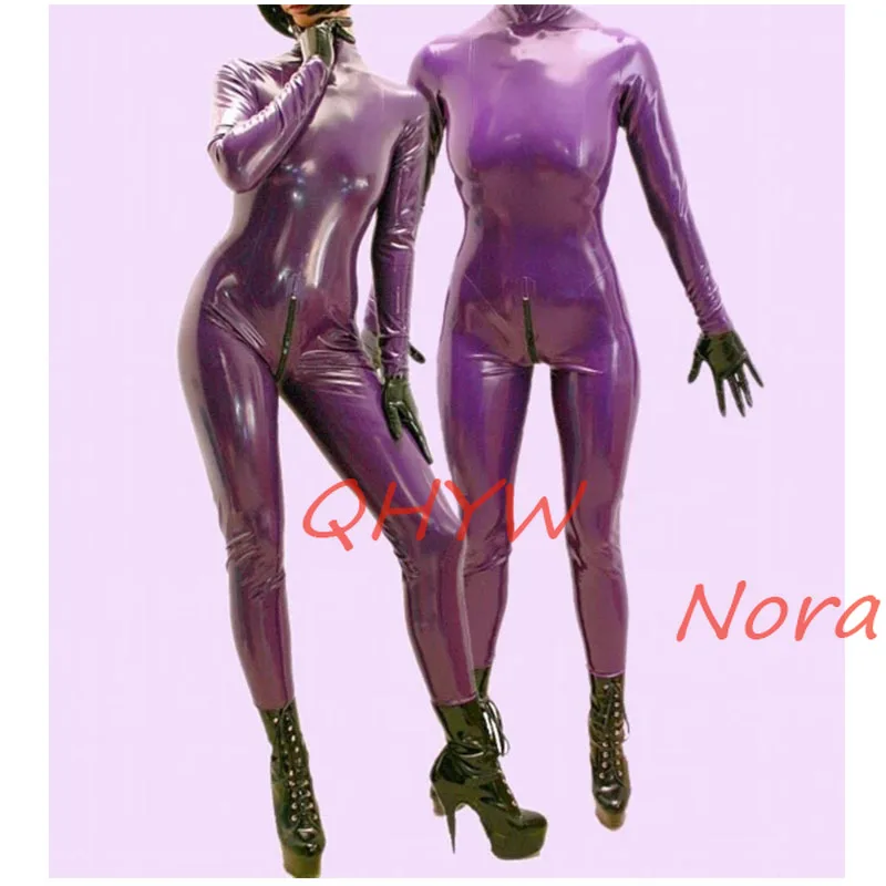 Сексуальный Женский Пурпурный комбинезон из латекса и резины, эласт...