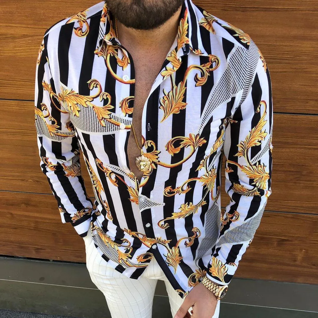 Мужская рубашка в полоску, с длинным рукавом и отложным воротником