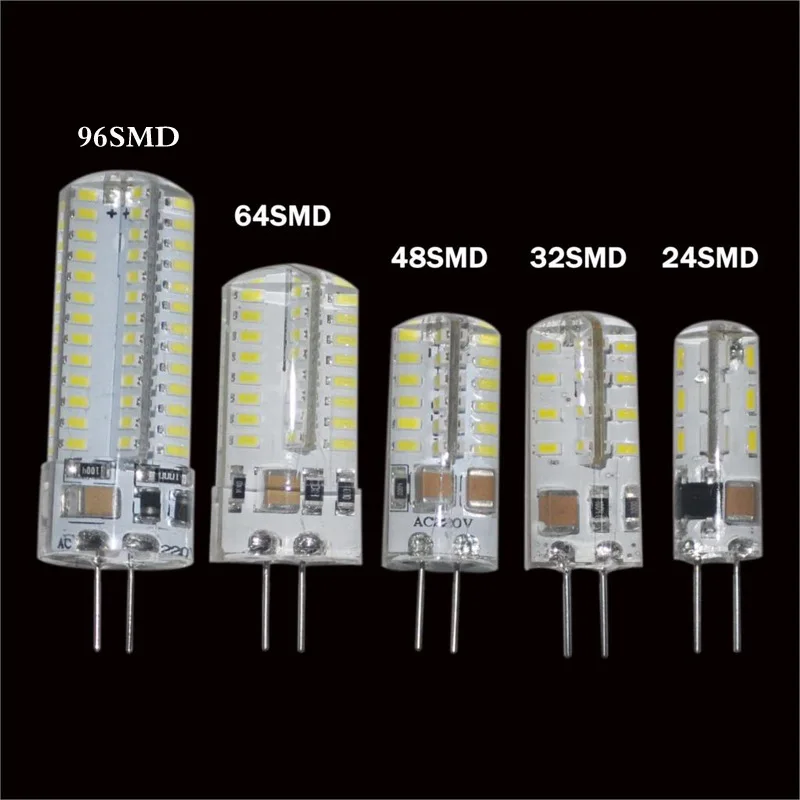 Мощность: 2 Вт/3 Вт/5 Вт/9 Вт/12 Вт/15 ВтДлина: 54 мм-61 ммНапряжение: DC12V/AC 220V/AC DC12VСветодиодный Кол-во: 24/32/48/64/104/152 шт.Диаметр: 16 ммТип разъема: G4Угол освещения: 360Поверхность: силикагельСветодиодный чип Модель: SMD 3014Цвет: теплый белый/холодный белыйЦветовая температура: теплый белый 2800-3200K, холодный белый 6000-6500KРазмер: 54 мм-61 мм * 16 мм (длина * диаметр)> Применение:В помещении, коридорах, офисах, ресторанах, кухнях и других помещениях> Место происхождения:Гуандун, Китай (материк)