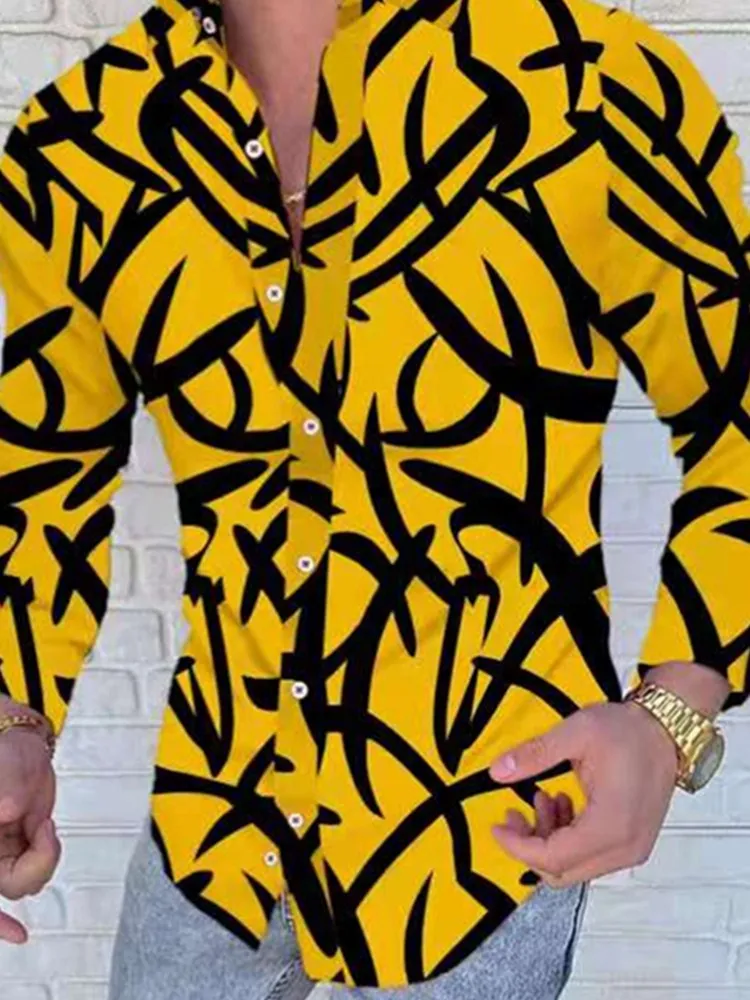 Рубашка мужская с длинным рукавом, винтажный принт, длинный рукав, ...