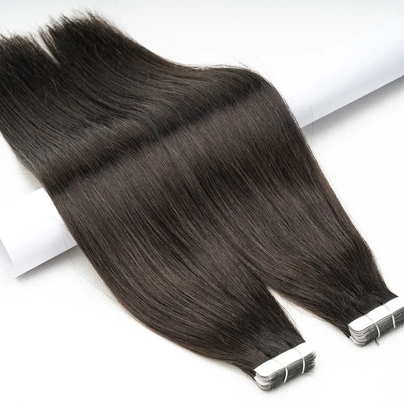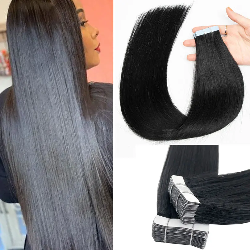 Remy шелковистые прямые человеческие волосы на ленте для наращивания, клейкие невидимые бразильские волосы на ленте, 40 шт.