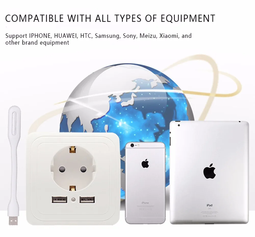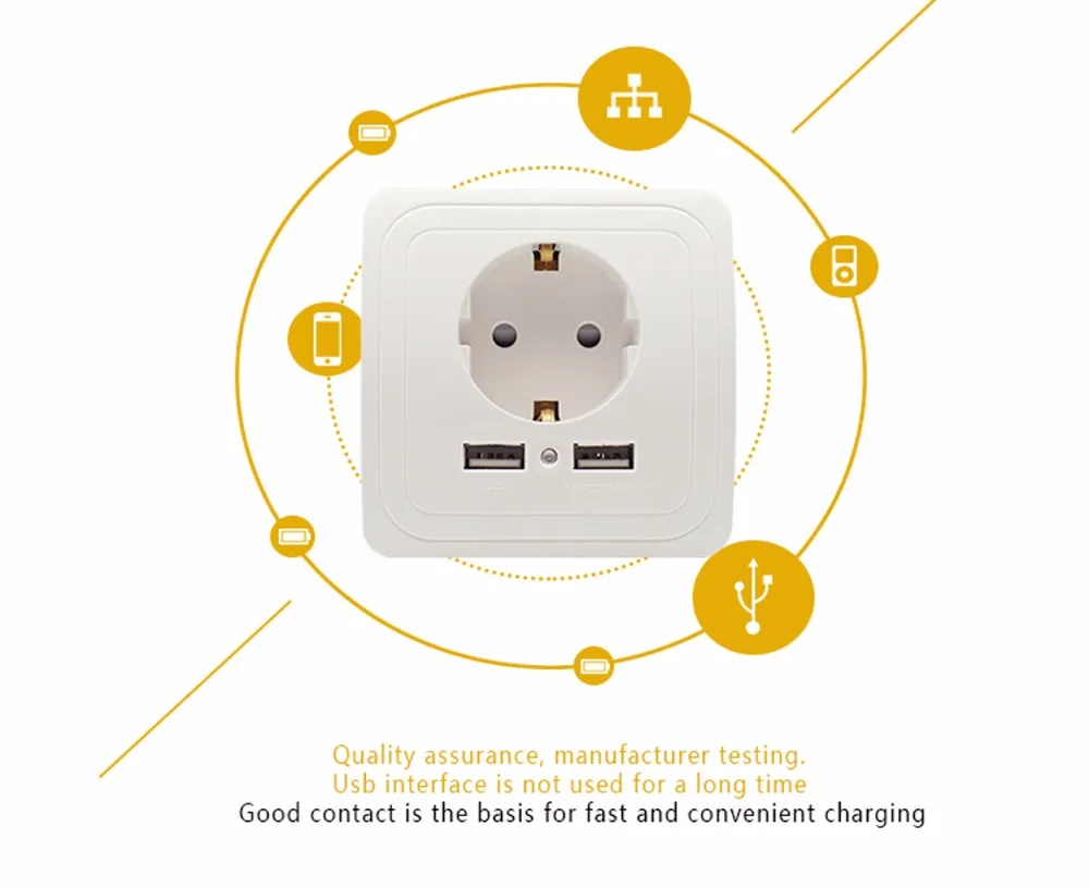 Розетка CXFG стандарта ЕС с двумя USB-портами, настенное зарядное устройство, адаптер для зарядки, двойная стандартная настенная розетка стандарта 2 а с розеткой