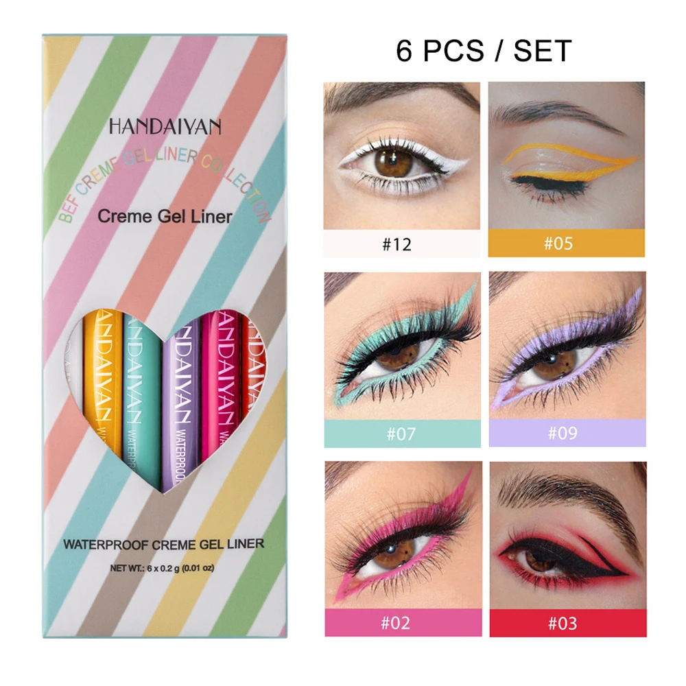 Набор для макияжа Taoye Teemo, гелевая подводка для глаз, 6 цветов, водостойкий Цвет s, белая подводка для глаз, ручка для макияжа, косметика желтого и синего цвета