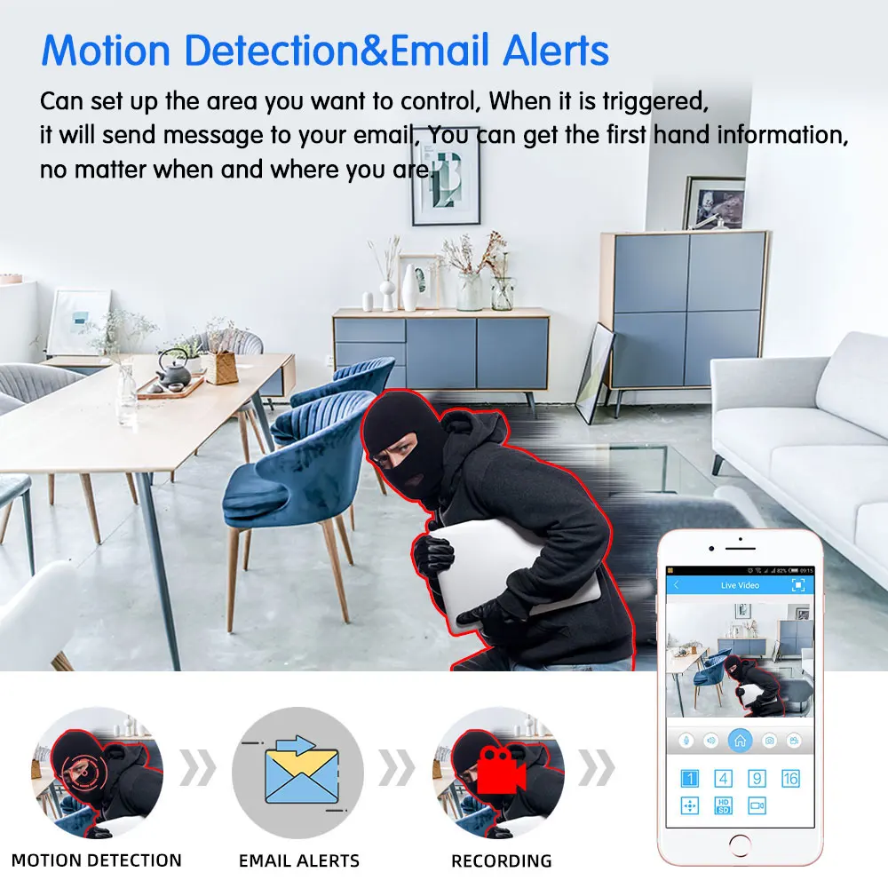 Можно настроить область, которую вы хотите контролировать, когда она срабатывает, она отправит сообщение на вашу электронную почту, вы можете получить информацию из первых рук, независимо от того, когда и где вы находитесь.