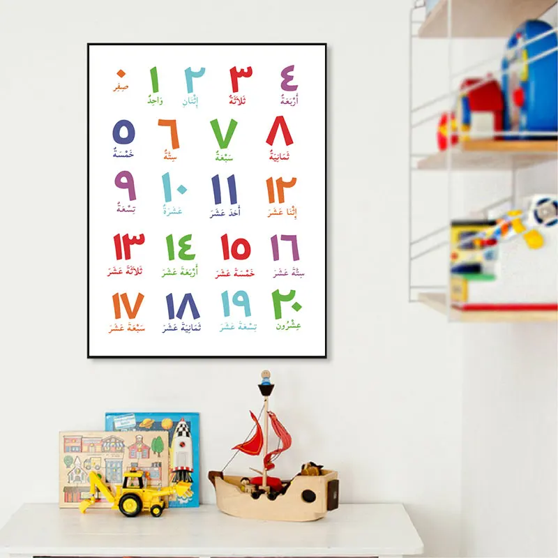 Мусульманская настенная живопись, Арабские буквы, Мультяшные радужные алфавиты, цифры, постеры, принты для детской комнаты, Настенный декор