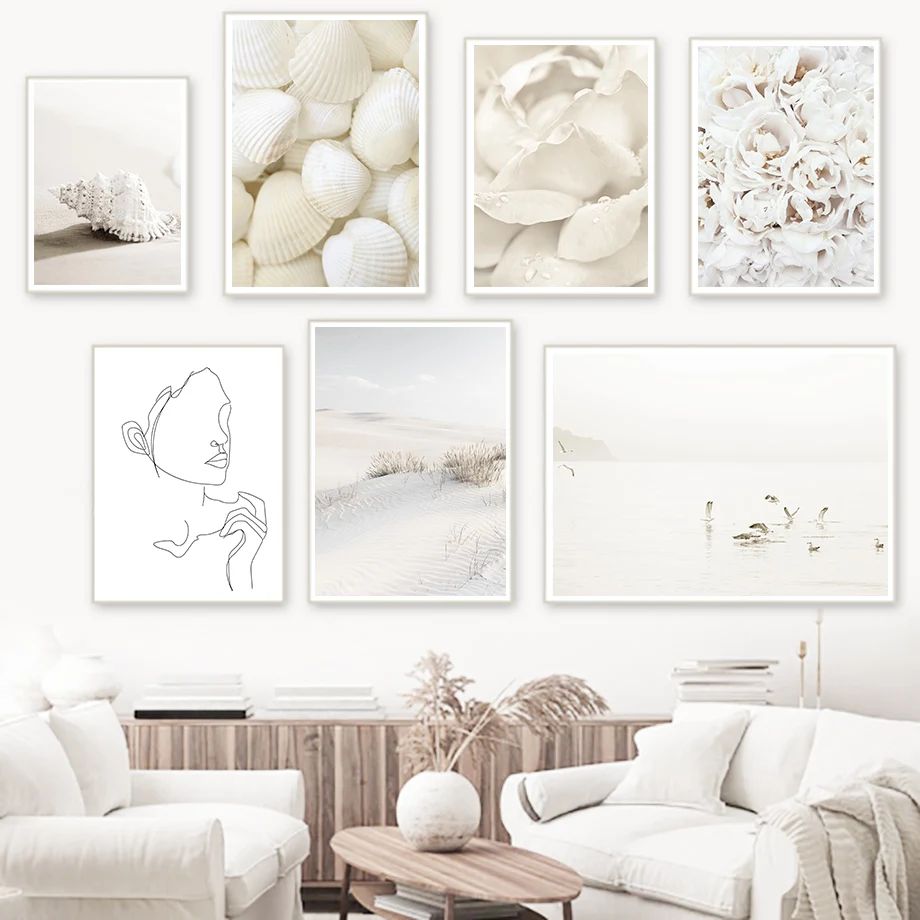 Настенная картина с изображением бежевого пейзажа, пляжа, ракушки, ...