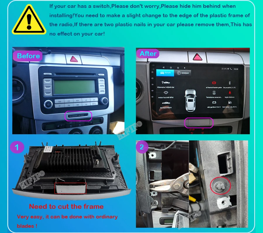 1. Это устройство не подходит для автомобилей с звуковой системой Dynaudio. Его голос не работает должным образом для звуковой системы Dynaudio!2. Если у вашего автомобиля есть переключатель подушки безопасности, пожалуйста, обратите внимание!