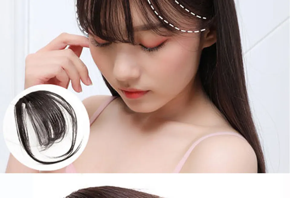 Искусственная невидимая синтетическая челка с бахромой спереди, зажим для волос, воздушные челки из волокна, искусственные хорошие аксессуары для укладки волос, шиньоны