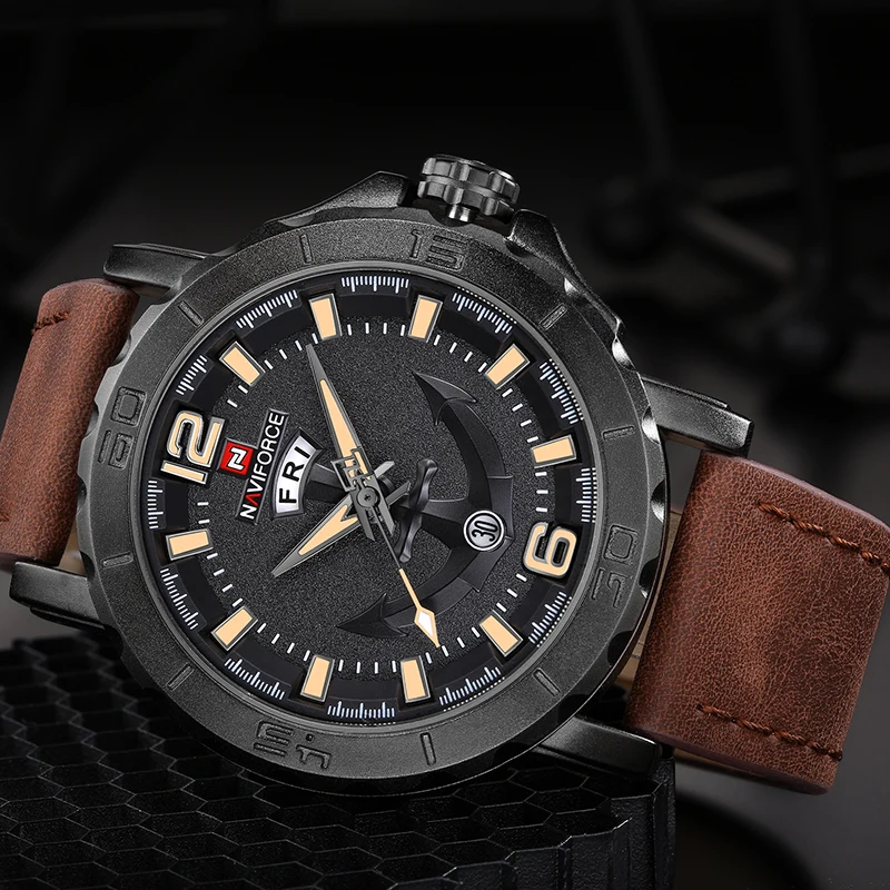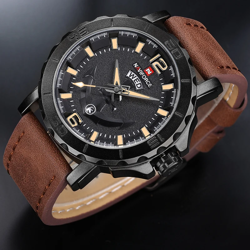 Часы мужские кварцевые с кожаным ремешком, в стиле милитари