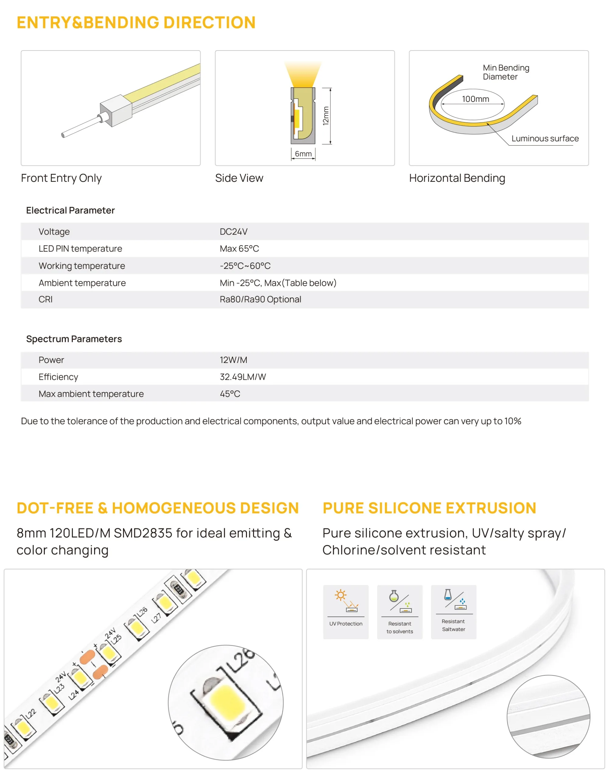 1 м DC24V теплый белый 0612 гибкий светодиодный неоновый