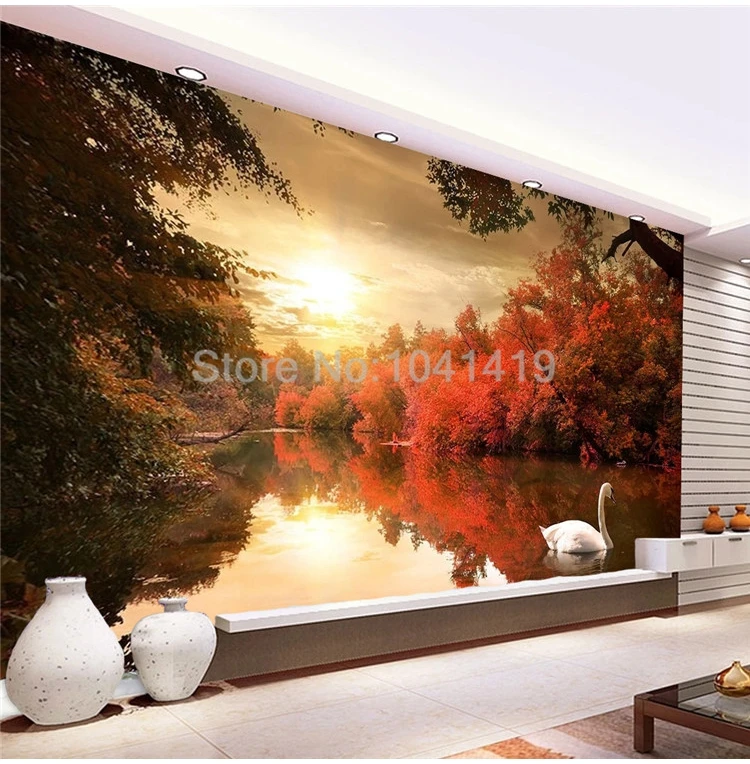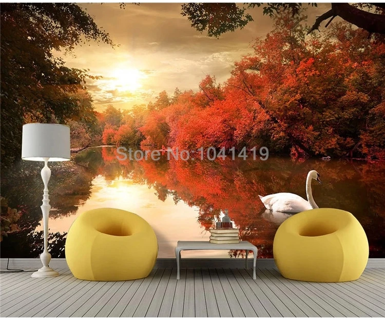 Фотообои на заказ современные осенние Сумерки Лебединое озеро 3D Природа обои Пейзаж живопись гостиная спальня фото фрески
