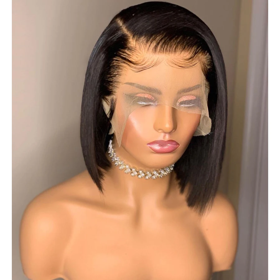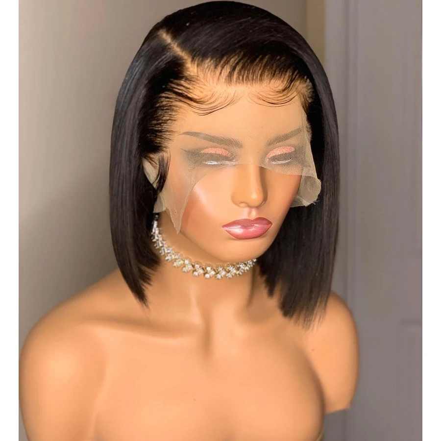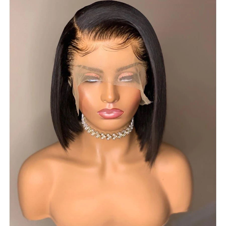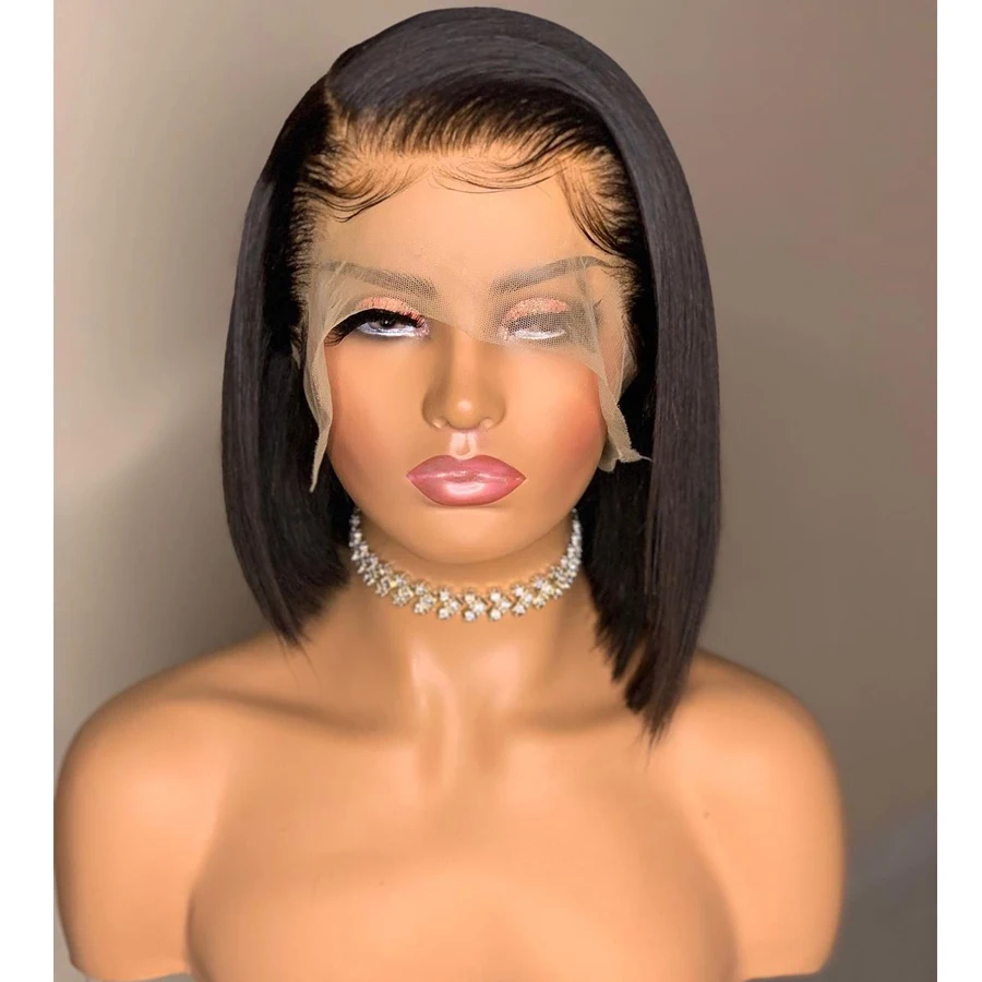 Парик средней части, 14 дюймов, короткий вырез, Боб, прямой, кружевной, передний, синтетический, для черных женщин, предварительно выщипанный, термостойкий, без клея