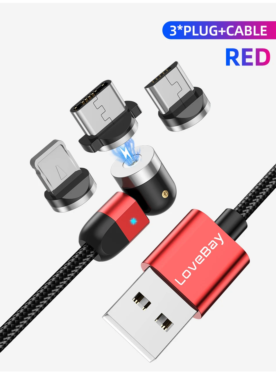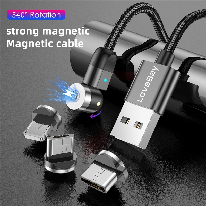 Магнитный кабель Lovebay Micro USB Type C Lightning 540 , магнитное зарядное устройство для телефона iPhone 11pro Max Samung, провод для быстрой зарядки, шнур