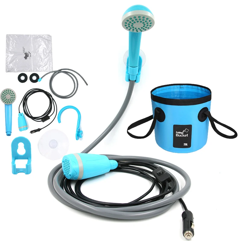 Походный душ 12 В, портативная автомобильная мойка, Электрический уличный душ, сумка для воды для путешествий, мойка домашних животных, пеший туризм, полив цветущих растений