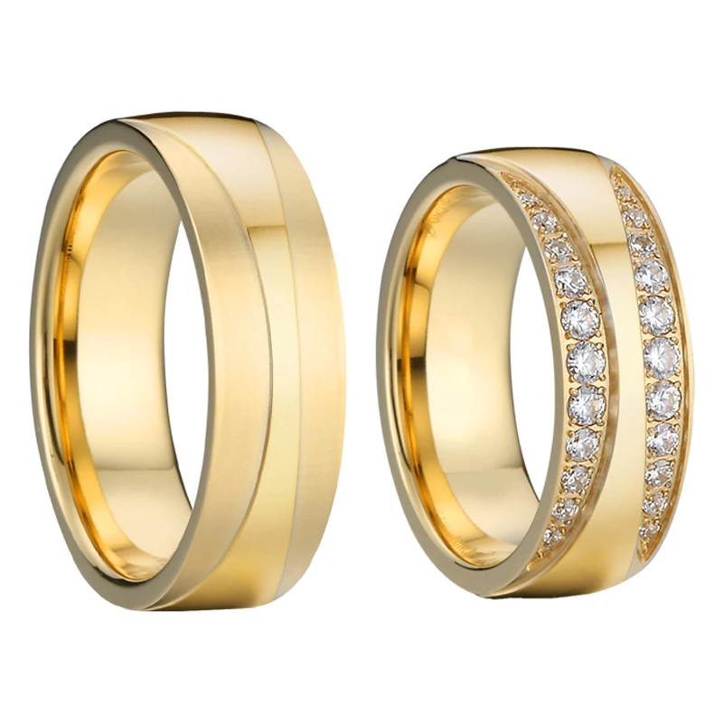 Комплект свадебных колец для пар, 1 пара, позолоченные 18 карат, ко...