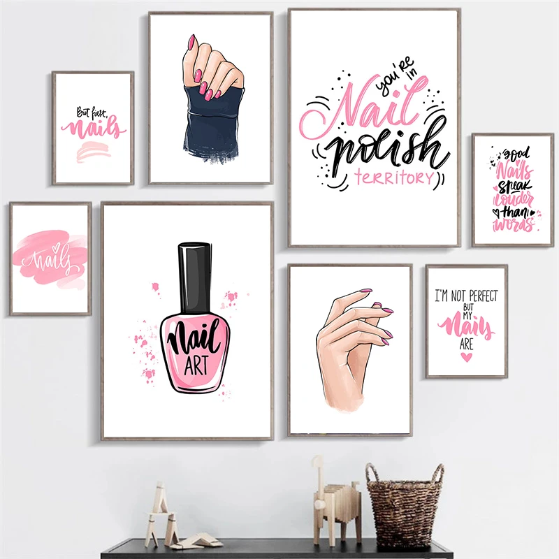 Модный макияж, настенное искусство, холст, картина, плакат, лак для ногтей, отпечаток пальца, Настенная картина для гостиной, Современное украшение для дома