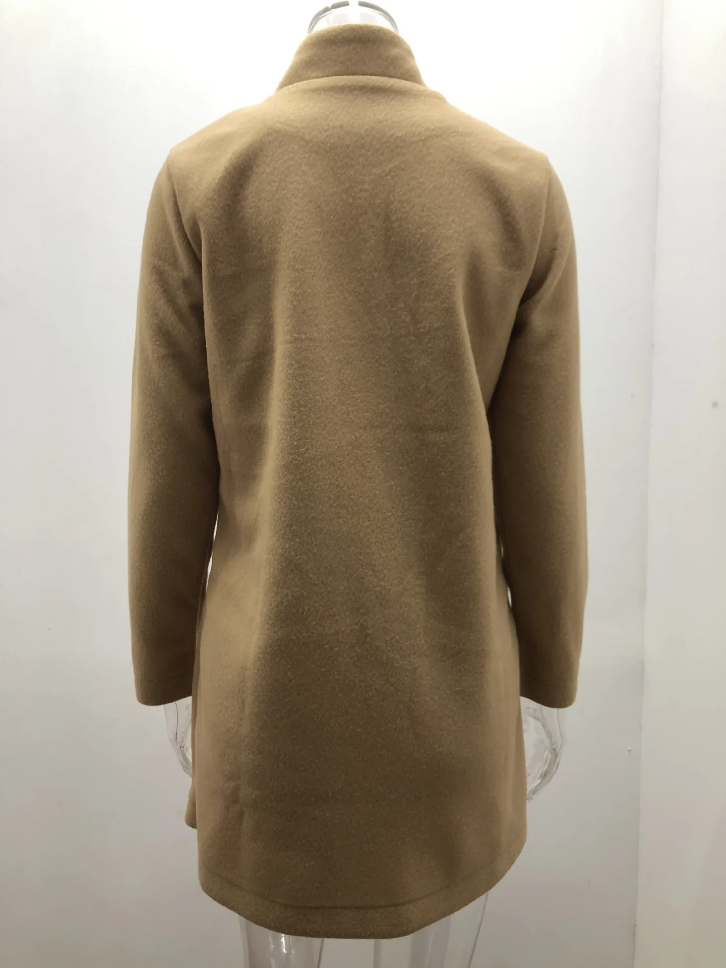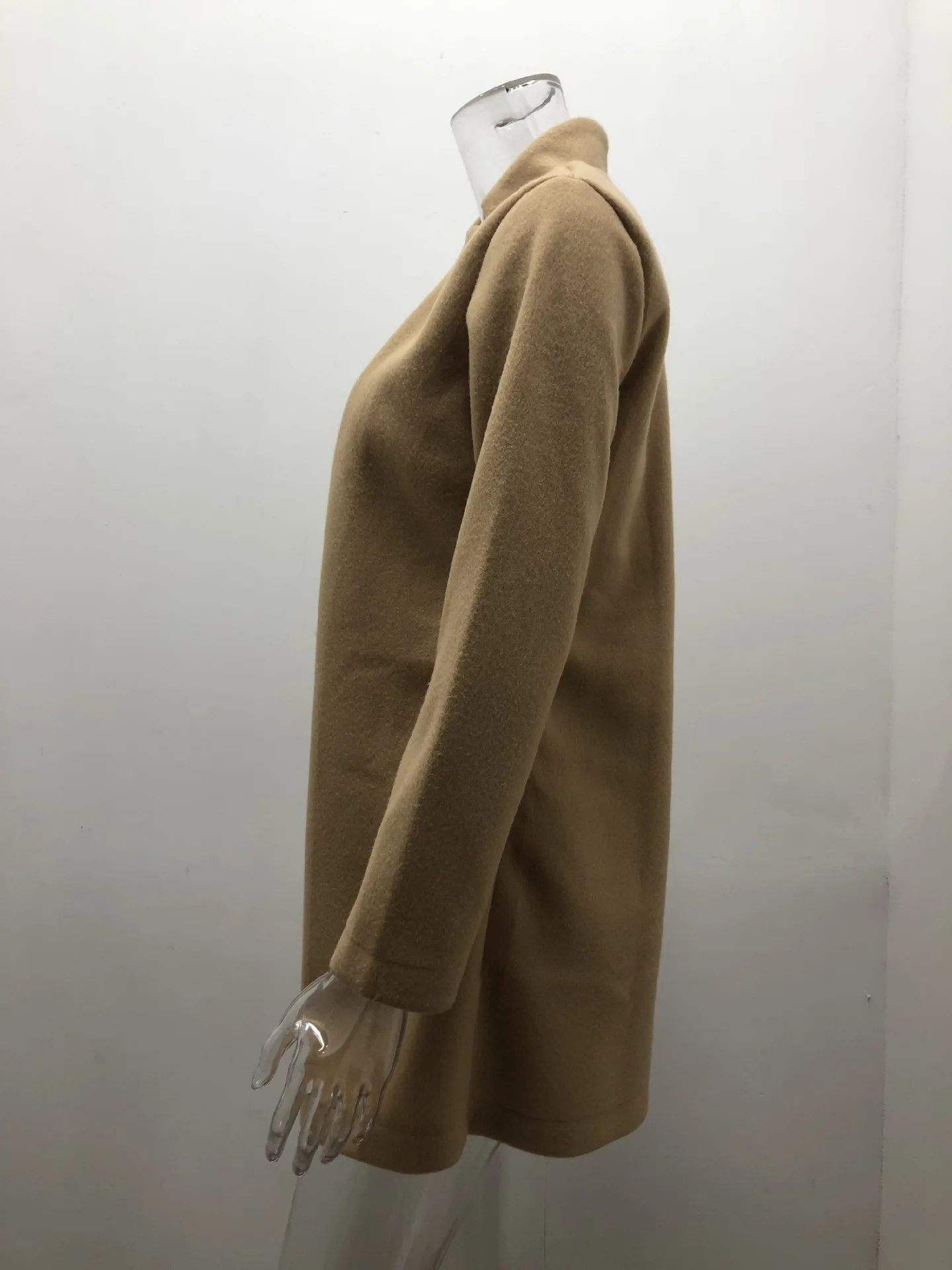Женское Однотонное шерстяное Свободное пальто со стоячим воротником...