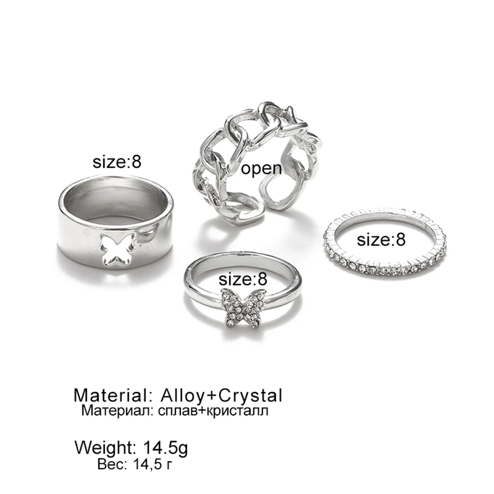 Набор колец с бабочкой KISS WIFE в богемном стиле для женщин и девочек, кольца на палец с цепочкой с кристаллами и крестиком, 2021 тренд, регулируемый размер, ювелирные изделия